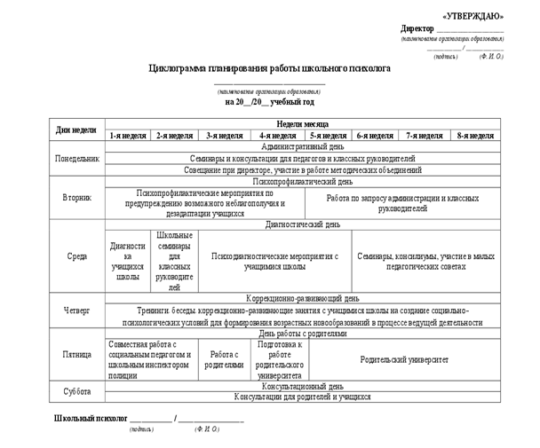 4Четверг10.00-11.00 (1 час)Подготовка психологических мероприятий